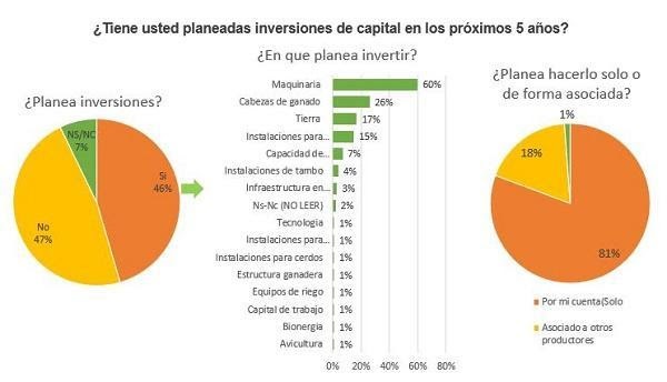 El 46% de los productores planea realizar inversiones en activos fijos en los próximos 5 años. Es decir, se mantiene la tendencia evidenciada luego de la campaña 2020/21 que registró importantes inversiones en maquinarias, que fue posible gracias a los excedentes financieros resultantes de altos precios internacionales/locales y rendimientos, en general, razonables.